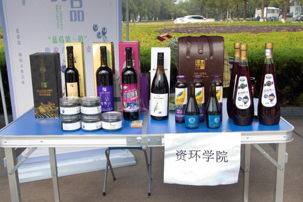 “安庆怀宁黄墩镇是安徽蓝莓第一镇……”资源环境学院的摊位循环播放着一段产品介绍。他们本次展销的主要内容是特色蓝莓产品,这吸引了不少学生的目光。“黄墩镇的蓝莓产业规模大,但是市场知名度很低,销售渠道不广。我们学院的‘宜城优品’大学生创业团队就决定帮助当地相关企业,推广他们的农副产品。”旅游管理专业2019(1)班的胡鲜是团队主要负责人,他介绍:“创客文化节开始后,我们联系到了生产者,将他们的产品带到学校进行义卖,所得收入也会全部返还给生产者。”