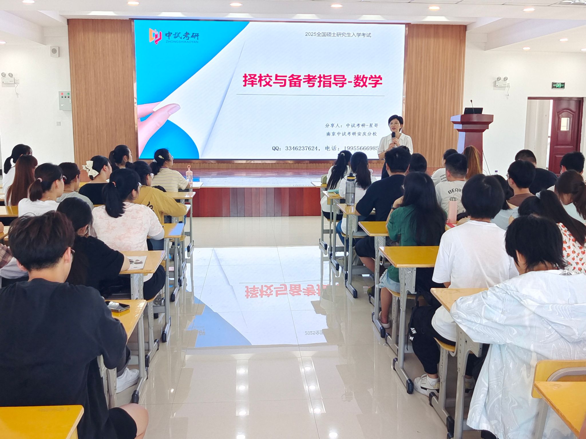 9月6日,数理学院在数理楼401报告厅举办数学专业考研公益讲座。学院邀请中试考研资深专业教师开展考研择校与备考指导,学院党委副书记彭芳珍、辅导员和数学与应用数学专业近200名学生参会。