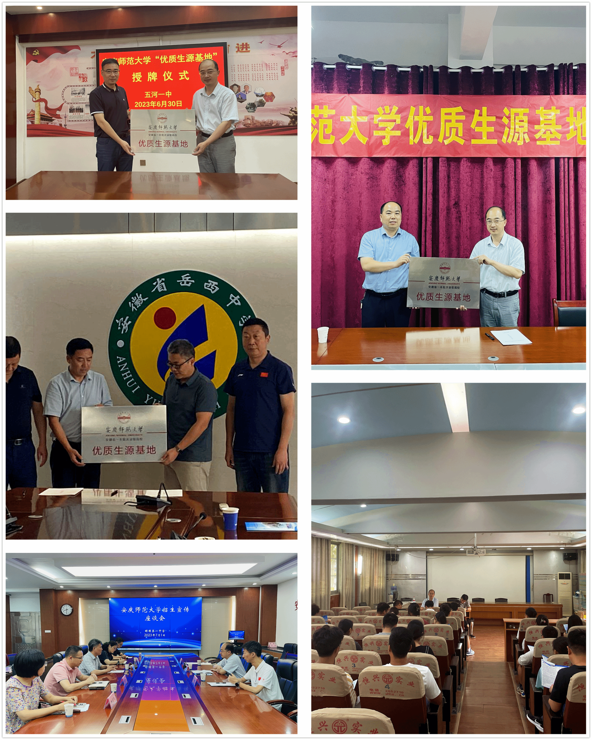 招生宣传组一行分别与五河第一中学、固镇县毛钽厂实验中学、安徽岳西中学签订优质生源基地的合作协议并授牌,回访了安徽省蚌埠第一中学。学院相关负责人分别向4所中学详细介绍了学校办学历史、办学条件、学科建设、专业特色、人才培养等基本情况,解读了今年的招生政策,尤其是介绍了体育学院办学情况。4所中学相关负责人对学校办学水平和人才培养质量予以高度肯定,对学校招生政策和录取要求有了更深了解,并表示将会组织、动员符合条件的优质生源积极报考,到大学进一步深造发展。招生宣传组在五河第一中学召开了招生宣讲专场,耐心细致地向考生和家长们解答每一个问题,鼓励广大考生积极填报威尼斯官网。