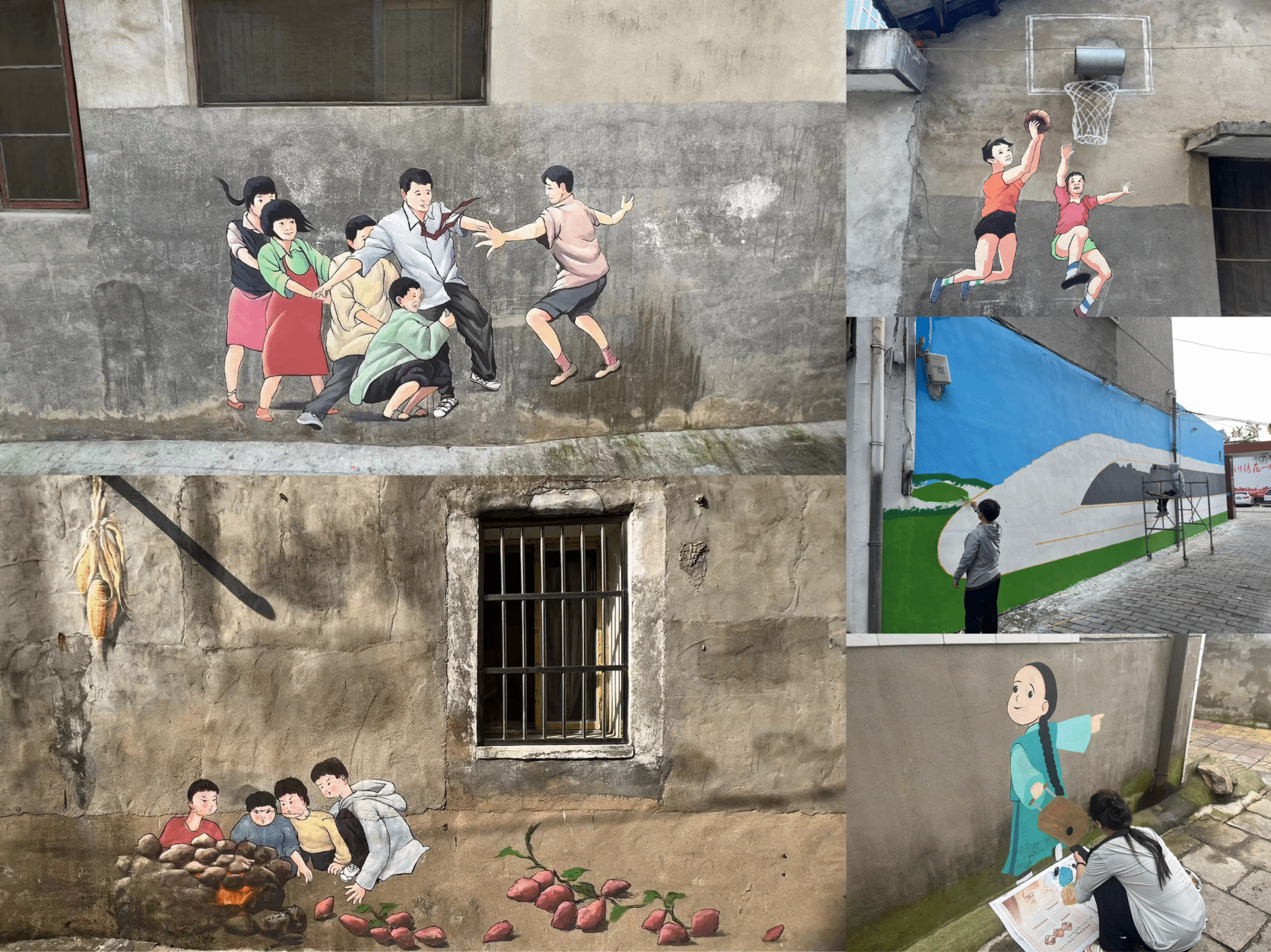 在桐城市文昌街道建设社区,来往居民看着街巷中的一幅幅墙绘作品津津乐道,饱含童年生活的时光记忆“跃”上墙壁,成为小区中一道靓丽的风景,这是美术学院“绘美桐城”暑期社会实践团赴桐城市开展实践调研活动,以墙绘形式,将游戏机、毽子、弹弓等怀旧元素呈现在墙面上,为居民们“演绎”的40余幅颇具童年记忆的墙绘作品。