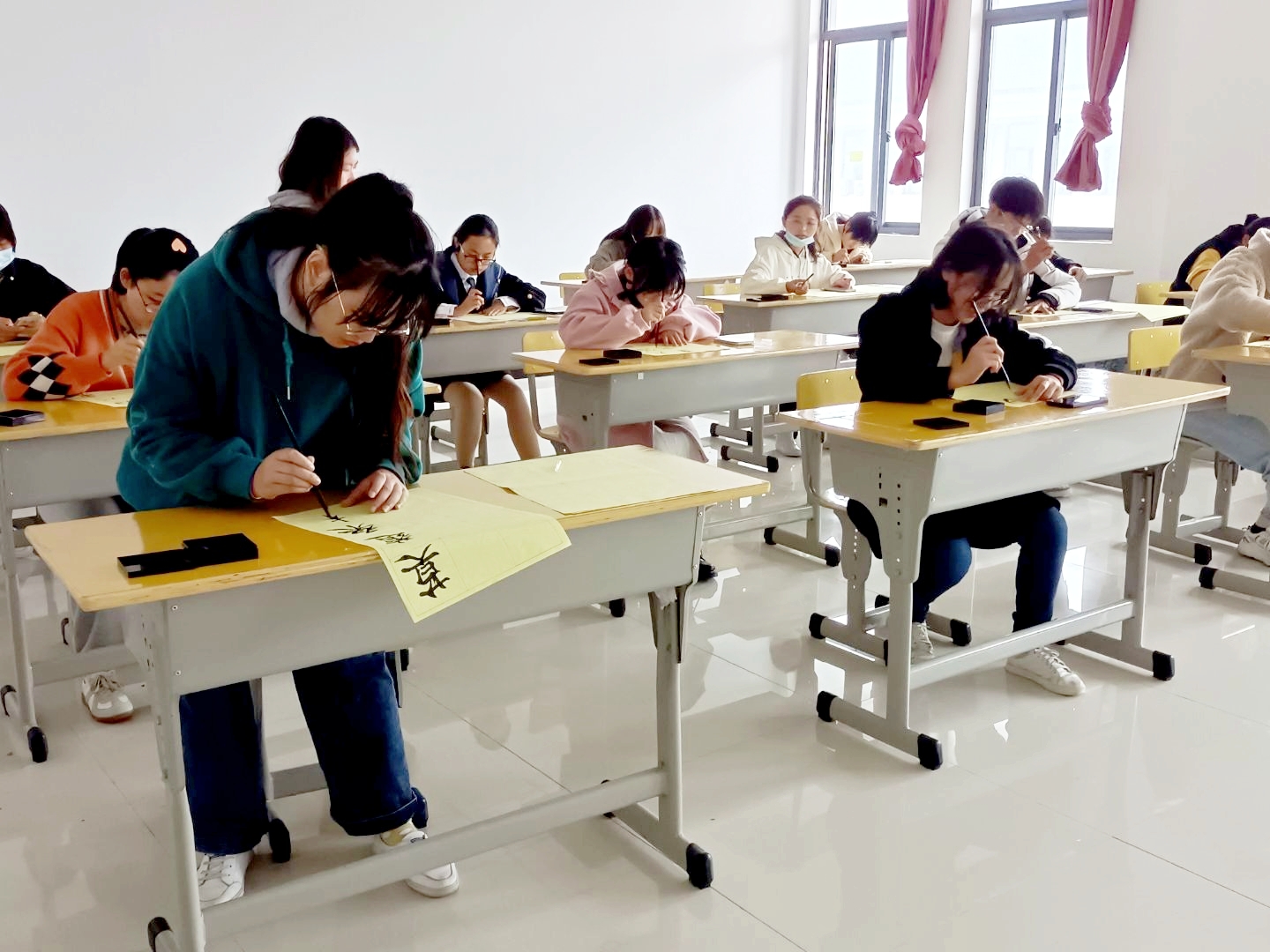 比赛中,伴随着悠扬的古风曲目和浓郁的墨香,同学们凝神运笔,挥毫泼墨,气氛紧张而热烈。笔墨飞舞间,一幅幅或娟秀柔美或遒劲有力的毛笔书法作品呈现在大家眼前。