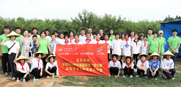 作为“体力担当”,实践团队长杨正鹏全程跟在学生后面,边收集采摘的黄桃,边分享自己的学习经历和劳动故事。经过十多天的艺术支教,他早已经和学生“打成一片”,成为学生们心目中的“孩子王”。看到孩子们的进步,他“发自内心”地感到高兴,真切地体会到教书育人的神圣感和成就感。“团队成员都希望把所学的教给他们,弥补乡村中学艺术师资的缺失,用音乐舞蹈串联学生德智体美劳‘五育’发展。”于他而言,支教更是“教学相长”,黄桃园的劳动实践课也让他体会了劳动的艰辛与快乐。