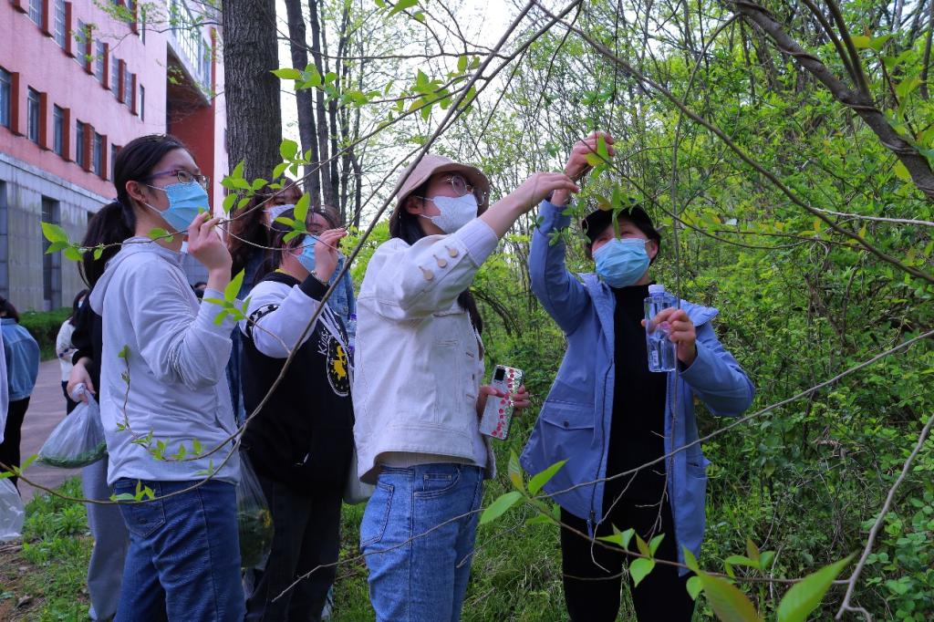 “识野之旅”以校图书馆为起点出发,沿途经过艺术楼、教师公寓,最终抵达校内东苑食堂,仅3公里的路程,40余名学生们却走了将近2个小时。“这是野蒿”“这里有蒲公英”“那是一节竹笋”……他们伏着身体,在草地上开展“知识较量”,有些学生还会在途中查寻资料确认野菜品种,生物科学专业2018(1)班的何明娜也不例外。“这是我第一次亲手‘挖出’专业课上学到的知识。”何明娜笑称,将草地当作“课本”,是属于“生科人”独一份的“浪漫”。