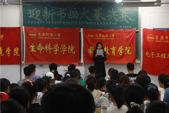 10月10日晚,电子工程与智能制造学院、资源环境学院、教师教育学院和生命科学学院再续传统联合举办迎新书画大赛决赛。