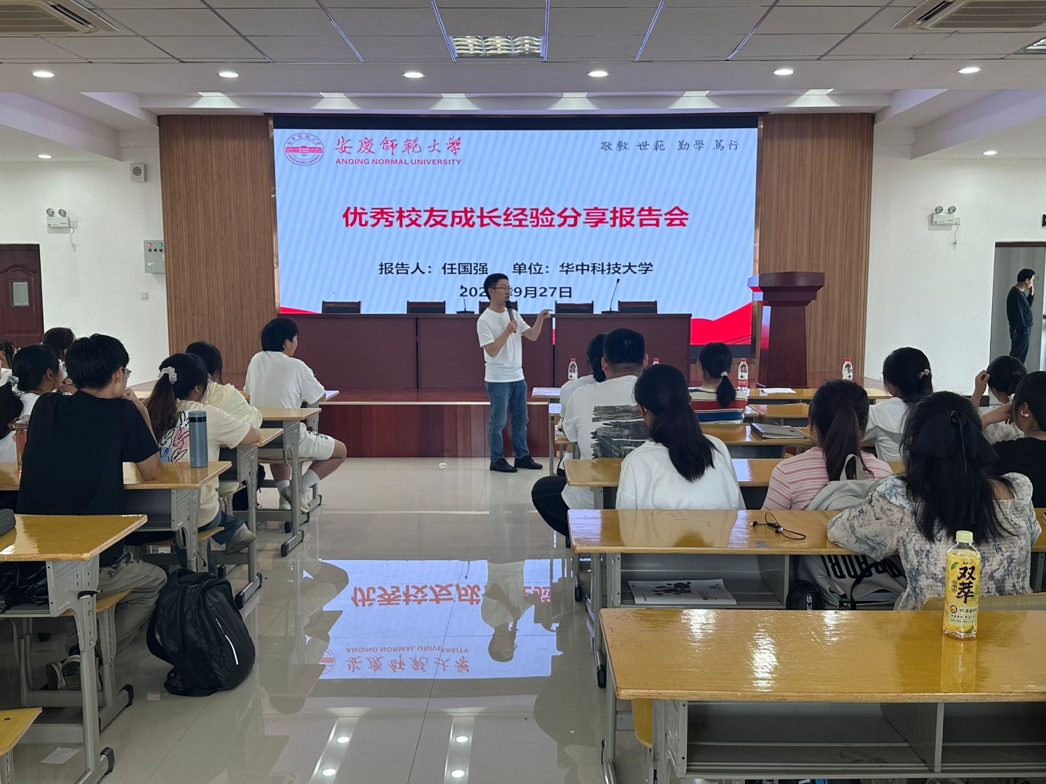 9月27日,数理学院在数理楼401报告厅举办优秀校友成长经验分享报告会。学院特邀请优秀校友、华中科技大学教师任国强和武汉大学博士生代银作经验交流分享。学院党委副书记彭芳珍主持报告会,4个“稼先班”辅导员、学生近150人参会。