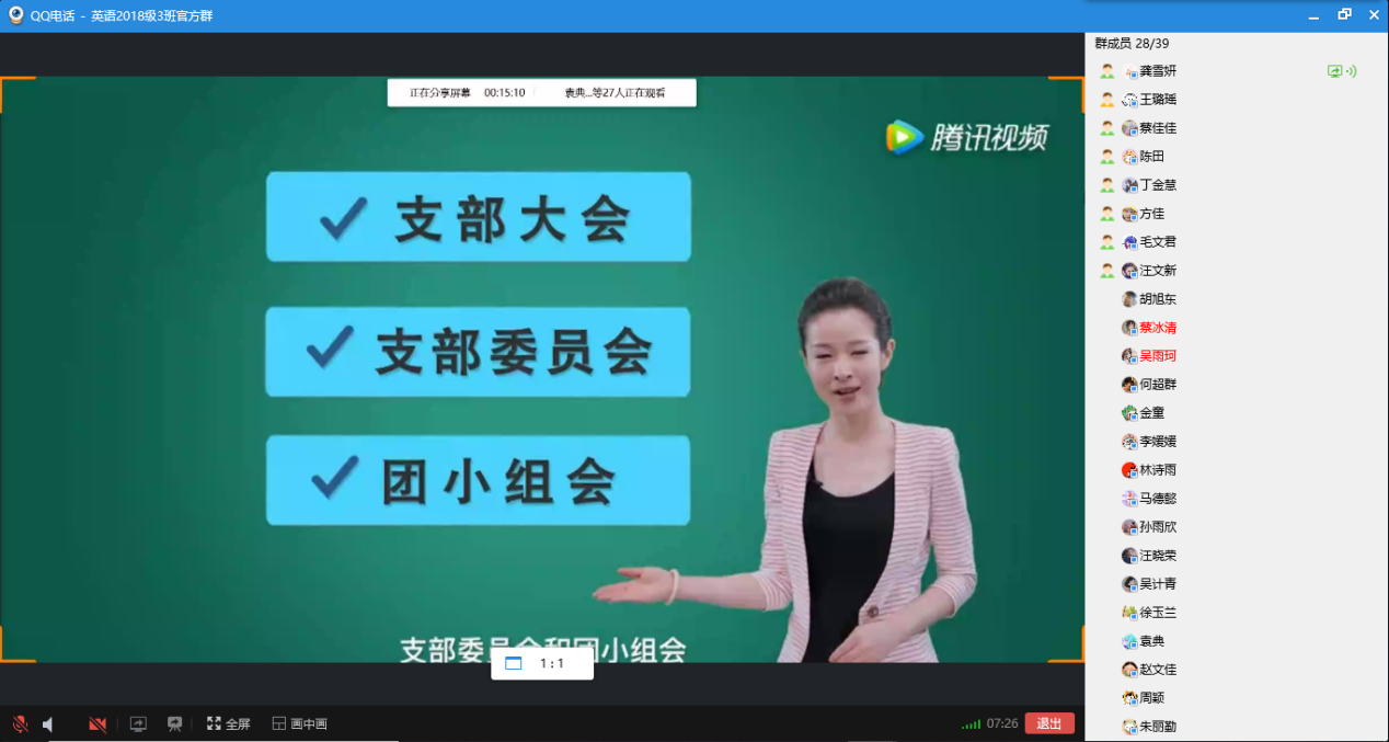 为健全共青团的组织生活,严格团员教育管理,提高团员干部的理论知识水平,近期,外国语学院各团支部进行线上“三会两制一课”专题学习,全体共青团员参与本次活动。