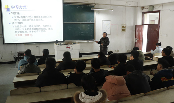“江老师举的例子简单深刻,对每一个章节,都有自己独特的见解。就像函数,举例为帮工,帮忙储存代码,帮忙干活。”计算机类2019(3)班的杨仁鑫说,报告会提到了很多与竞赛相关的知识,平时课堂上也无法学习到,对所有感兴趣的同学能够产生一定的积极影响。他也表示,报告会后,他和同学打算一起参加江老师的培训,备战明年3月的ACM竞赛,争取能够取得较好的成绩。