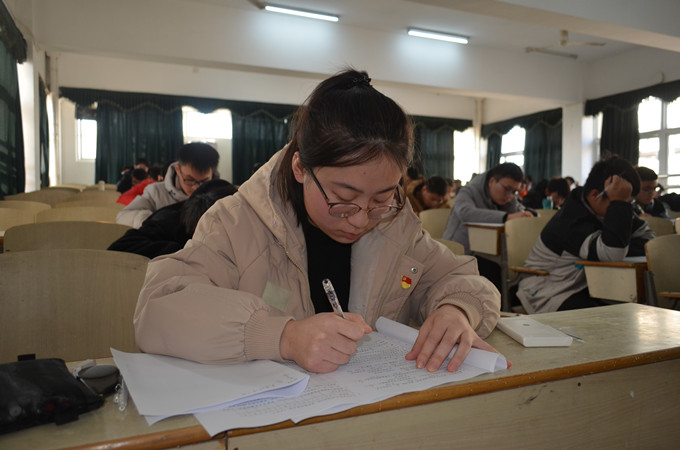 “与以往不同,这学期期末考试期间,我们在参加考试时,不仅要携带学生证和校园卡,还要佩戴党徽,以亮明党员身份的方式承诺诚信考试。”邓稼先学生党支部党员王凤杰说道。为进一步端正考风、严肃考纪,充分发挥大学生党员的引领示范作用,邓稼先学生党支部在本次期末考试中开展了“亮身份、做表率”诚信考试主题党日活动。