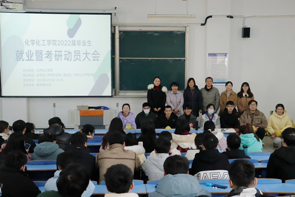 为深入贯彻2022届全国普通高校毕业生就业创业工作网络视频会议精神,实现毕业生高质量就业,12月3日上午,化学化工学院在D208教室召开2022届毕业生就业暨考研动员大会。化学化工学院党政领导、毕业班辅导员和教师代表出席会议,200余名毕业班学生参会。