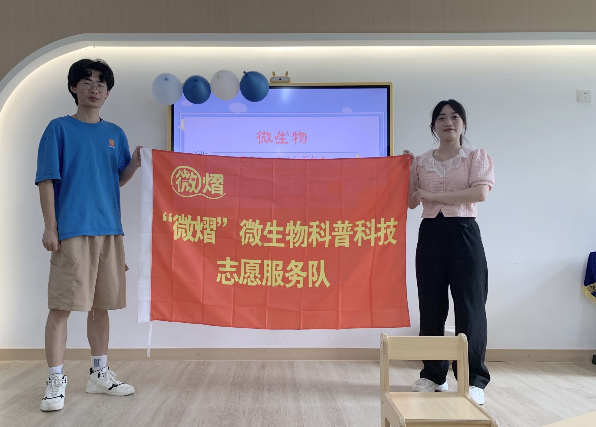 黄祝带领的“微熠”微生物科普团队开展了“细菌手印”和“微生物作画”科普活动。让幼儿动手操作“细菌手印”实验,对手上的细菌形成初步的认识,以养成良好的卫生习惯;利用自然界存在的微生物释放的色素为颜料,培养基为画布,进行作画,让幼儿体会微生物神奇烂漫的一面。