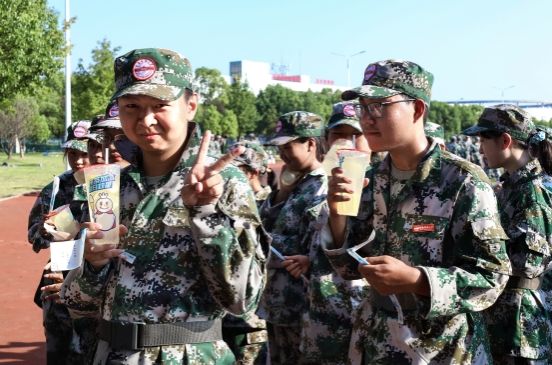 军训休息之余,2023级新生辅导员们给学院参训新生分发柠檬水,并与新生积极交流,关心他们的身体状况和生活情况。
