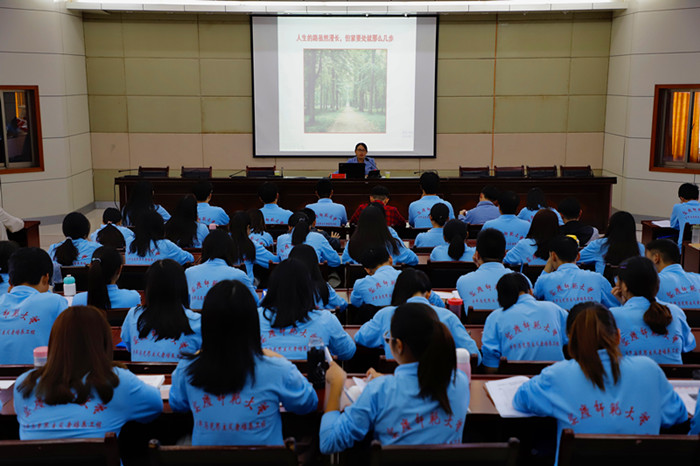 10月9日,威尼斯官网第十一期“青年马克思主义者培养工程”培训班专题讲座(以下简称“青马班”)在行政楼一楼会议室举办,马克思主义学院副教授陶春丽作“青年马克思主义者是怎样炼成的”专题讲座。100余名学员胸配团徽,身着统一的蓝色班服聆听讲座。