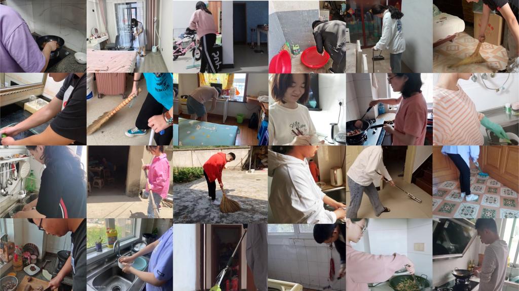 数学与应用数学专业2019(3)班的黄岩松承包了买菜、做饭等家务,他表示,在承担家务的同时也感受到了沉甸甸的责任。大学是人生正确价值观养成的关键时期,学生们应当体会父母的不易和艰辛,帮助他们做一些力所能及的事情。“做家务不仅能够帮父母减轻负担,还能促进家庭和谐。”