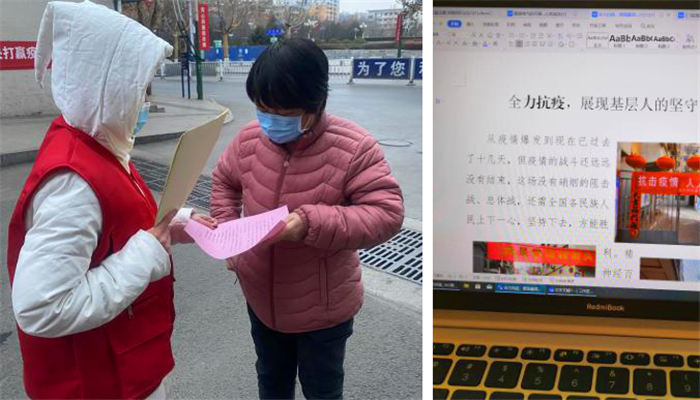 疫情发生以来,2019级语言学及应用语言学专业赵莉作为一名志愿者始终在基层参与防疫工作。她协助工作人员登记路口往来进出人员,并在工作之余根据自己的所见所闻,为社区提供宣传报道材料。“作为当代青年研究生,我们就要有为人民奉献的责任意识。在国家和人民需要的时候,就要尽自己的所能贡献力量。虽然不能到一线与医护人员一起战斗,但我们可以发挥自己的专业特长和力量,帮助基层工作人员开展疫情防控工作,承担起应尽的公民责任。”