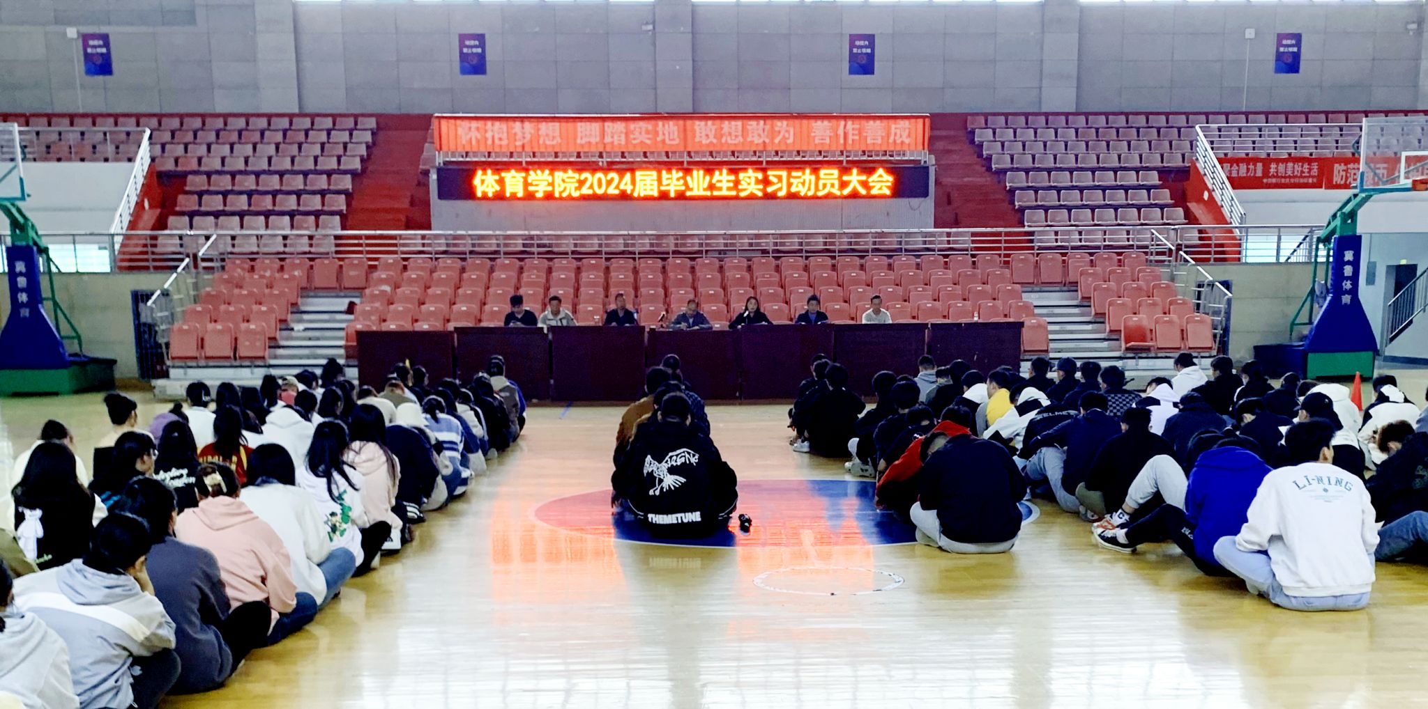 10月7日,体育学院在龙山校区篮球馆召开2024届毕业生实习动员大会。学院党委副书记王玮、副院长林秋菊出席会议,实习指导教师代表、毕业班辅导员、教学办负责人和全体实习学生参加了会议。会议由林秋菊主持。