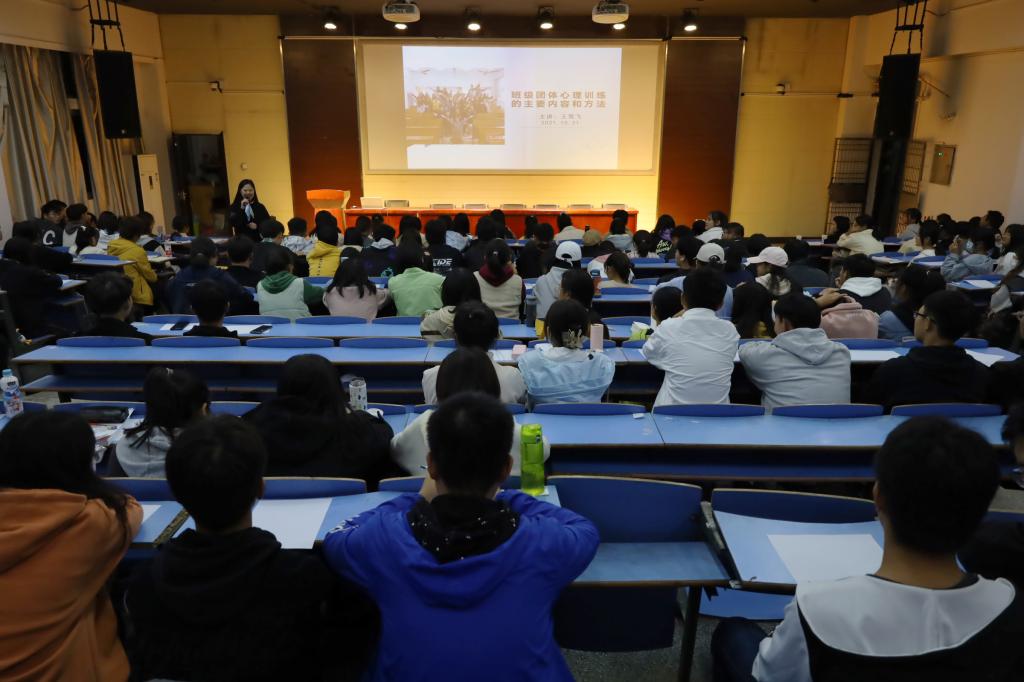 10月21日晚,威尼斯官网在文津楼111教室开展新生心理健康周活动。安徽省心理咨询师协会理事、池州学院心理健康教育中心主任王雪飞副教授作为主讲人,为全体2021级班级心理委员进行了一次团体心理训练专题教育。