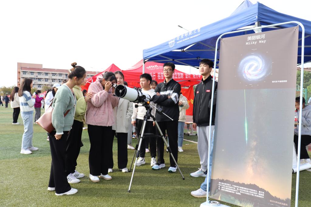 “可以看到迷彩建筑!”“看得特别清晰!”首次公开招新的天文爱好者协会将一台天文望远镜带到现场供大家观测,新生直呼“惊喜满满”。“虽然是第一次招新,但我们拿出了‘杀手锏’,招新丝毫没有压力。”该协会会长杨心怡介绍,通过望远镜,学生可以看到操场对面山上的天文台。“大家平时很少有机会接触天文望远镜,我们希望用天文知识带来一些不一样的乐趣。”