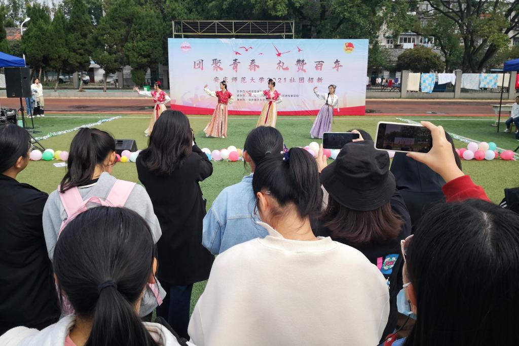 筹划准备、场地安排、租借设备、制作海报......据了解,社团招新从国庆节前夕就开始策划,前后准备了一个月左右。“我们唯一担心的是不能面面俱到,害怕遗漏某些环节,所以大家经常开会讨论复盘。”此次社团招新活动的学生负责人吴婧十分感慨,尽管整个过程遇到了不少困难,但大家依然积极克服,最后才圆满呈现出这一场“团聚青春,礼赞百年”的招新盛会。
