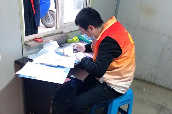 疫情发生后,张洋主动参与社区志愿服务队。他的主要任务是为出入的居民检查登记和测量体温。因为社区志愿服务是轮班制,张洋每天的工作时间刚好处于下班晚高峰,人流较多。每当遇到有群众不理解时,张洋总是很耐心地解释,每次检查结束后都向居民们说声谢谢。