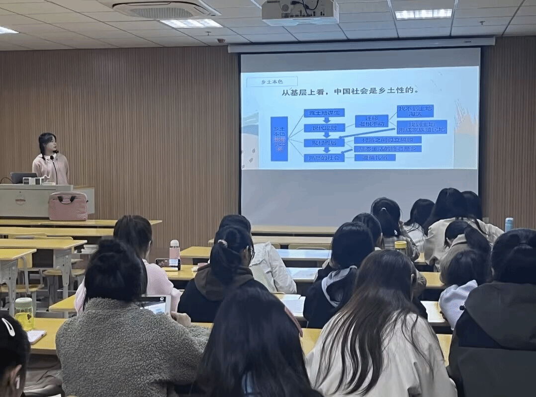 本次读书会采取线上线下相结合的方式,围绕“乡土本色,社会之思”正式展开。在PPT展示和点评环节,每个读书小组的代表上台展示PPT,讲述对研讨书目《乡土中国》的理解。在每小组讲述时,三位老师和其它小组从内容介绍、讲述水平和PPT制作水平三个维度对展示小组评分。最终,第二组成员刘文静、曹越、孙柔和芮雨晴凭借出色的展示和讲解给在场的老师和同学们留下了深刻的印象,获得本次读书会“最佳阅读小组”。
