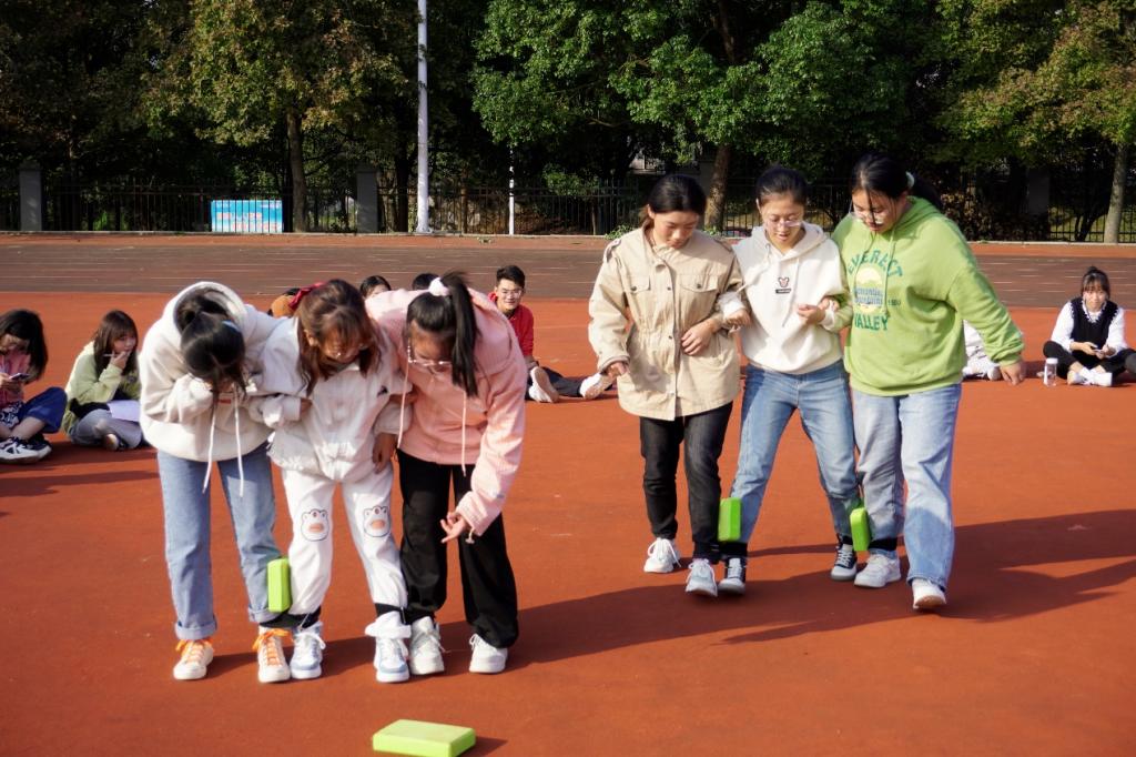 “开始”口令下达后,学生手挽手,相互扶持走向终点。随机组队的三位女生最先到达终点,她们不约而同地欢呼起来。当谈到小组如何做到快速行动时,她们说:“我们虽然是第一次见面,但是很快便达成了一致意见,轻松地完成了考验。”