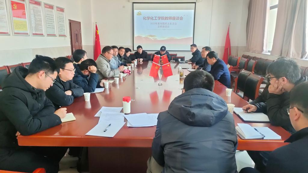 2月15日,化学化工学院党委书记李新建主持召开2022年度民主生活会会前征求意见座谈会。学院党委委员、副院长王钧伟和教师代表参加座谈会。