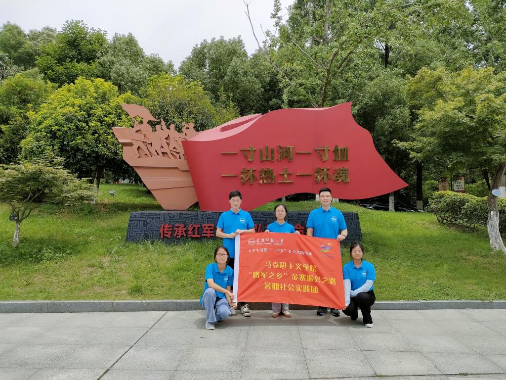参观瞻仰金寨县革命博物馆、金寨县革命烈士纪念塔、红军烈士陵园;阅读历史文献、采访金寨县革命博物馆馆长,重温金寨革命斗争史;走街串巷,主动向百姓宣讲党史,将红色故事与红色精神传递到基层。“10万多英雄儿女为国捐躯、10万多亩良田沉入水底、10万多群众移居深山,金寨革命老区用三个‘10万’印证了一心跟党走的大义,也有力地回答了‘中国共产党为什么能’。这次实践,我们不仅再次深入学习了安徽地方党史,更是一次信仰的追寻与坚定。”实践团成员们说。
