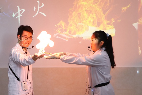 热冰实验、热冰书法、冰雕艺术……领略了冰雪世界的神奇后,“趣味化学科普浩然工作室”又带领现场观众进入了火的魔法世界,见证了魔法点灯、延时点火、火山爆发以及掌中火焰的神奇。