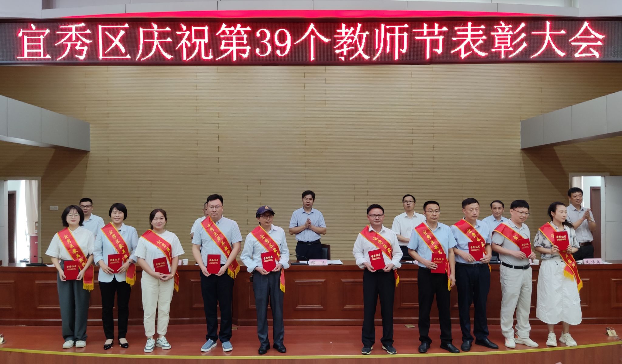 9月8日,附属龙城幼儿园教师代表参加宜秀区召开的庆祝第39个教师节表彰大会。教师林晨获“宜秀区最美教师”荣誉称号。