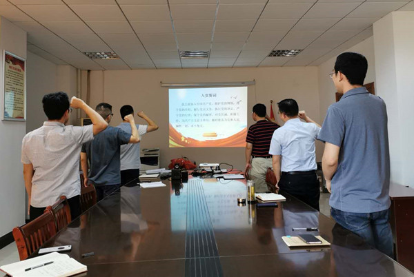 随后,面对鲜红的党旗,全体党员举起右手,再次庄严宣誓,重温入党誓词。铿锵誓言让所有党员更加牢记自己庄严承诺,永葆入党初心,切实增强了党员的政治责任感和时代使命感。
