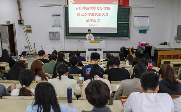 4月27日,音乐学院召开第三次学生代表大会。学院党委副书记肖之进、团委专兼职副书记、专职辅导员出席大会,来自各专业、各班级的56名学生代表参加本次会议。
