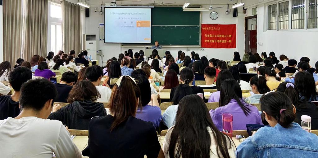 5月12日,马克思主义学院第一期“青马班”第五课开课,思政课教师郭祥围绕“话语演变”“理论逻辑”与“实践逻辑”等内容讲述“新时代青年运动的主题与方向”,引领青年学子高扬理想旗帜,坚定跟党走,建功新时代。