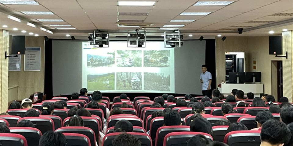 地理科学专业教师代表余光明在发言中用“接地气,有人气”“有别于数理化,有别于文哲史,有文有武”来形容地理科学专业,用“粗缯大布裹生涯,腹有诗书气自华”“百尺竿头,更进一步”对新生提出了殷切希望,鼓励大家从兴趣中汲取快乐,从时间中赢得价值,从追求中获得力量,从而收获成功的大学生涯。讲座中各专业老师还通过PPT讲解轮流向学生们进行有侧重的专业分析讲解,结合真实案例给新生们从专业前景、学习方法、就业方向、科学研究等方面提供经验指导,并就现场大家提出的问题进行了详细解答。
