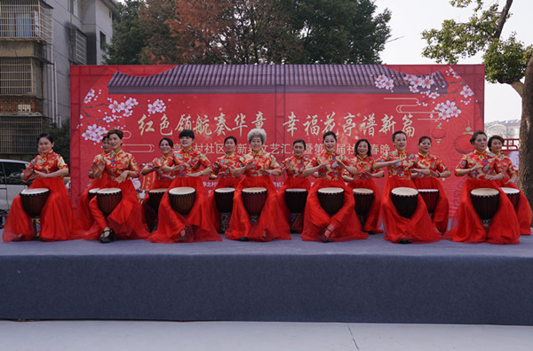 “开心的锣鼓敲出年年的喜庆……”伴随着音乐,16位头发花白的“花样阿姨”们身着红裙步入了舞台中央,用富有节奏感的鼓声迅速活跃了现场气氛。手鼓的表演者们是来自安庆市老年健身模特俱乐部的“好运佳”团队,团队领队蔡运爱介绍,这次表演的曲目《好日子》是俱乐部的经典作品也是之前获安庆市“康德杯”赛三等奖的曲目。蔡运爱表示自己很荣幸也很高兴参与到此次表演中,“之前我们一直都是和老年人在一起演出,没想到今天有机会和大学生们同台演出,感觉自己年轻了几十岁。”家住花亭北村社区的张奶奶也对“好运佳”团队的手鼓表演赞不绝口,“他们手鼓敲地可真好,感觉就像过年了一样。社区春晚就要这种热烈劲儿,才有新年的氛围。”用黄梅戏腔演绎的歌曲《山野的风》、充满民族特色的舞蹈《甘霖》、曼妙的双人拉丁舞……