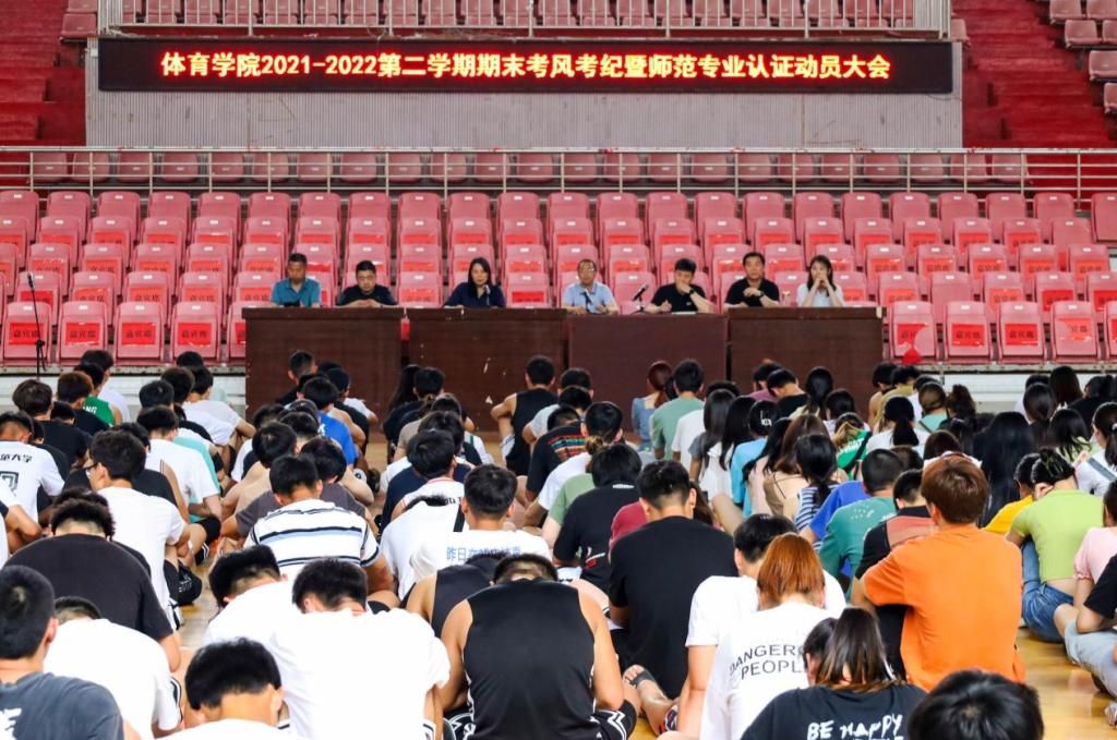近日,体育学院召开2021-2022学年第二学期期末考试考风考纪暨师范专业认证动员大会。副院长林秋菊、教学办主任和相关辅导员出席会议,全体研究生、本科生参加会议。党委副书记高栋梁主持会议。