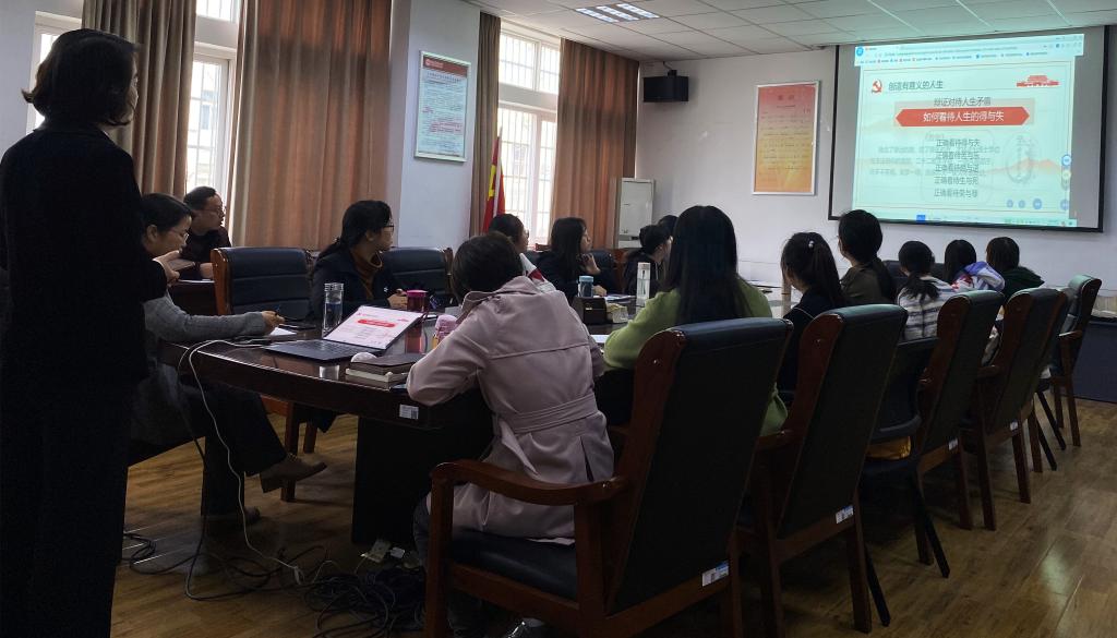 梅盈盈以“如何看待人生的得与失”为题进行示范教学。课程首先从《博士论文的致谢部分在网络平台走红》的案例导入,通过课堂调查,找出学生面对人生中的得与失时容易出现的困惑和问题。通过黄文秀、邓稼先等人的案例,引发学生思考,什么样的人生才是有意义的人生,怎样才能实现更大的人生价值。梅盈盈以娴熟流畅的语言,结合PPT、视频、案例等灵活多样的教学方式,深入浅出地对授课内容进行了阐释。