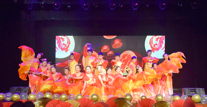 舞台上师生情笃乐融融,学院内一年迎新又逢春。在主持人铿锵有力的话语声中,晚会正式拉开序幕。吴云助致新年贺词,他回顾了2019年来学院取得的累累硕果,表达了对学院全体教职工和学生共同努力成果的肯定,展望了未来学院的发展前景。希望大家能够秉承“敬敷世范,勤学笃行”的校训精神,一同推动学院发展壮大。