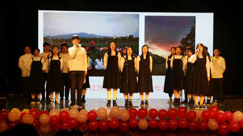 “海浪无声将夜幕深深淹没,漫过天空尽头的角落……”一曲婉转动听的《大鱼》拉开了本场晚会的帷幕。在随后进行的大合唱《歌唱祖国》中,表演者们身着正装,用激情昂扬的歌声表达着对祖国深厚的感情。由2019级数学类四班带来的表演《初恋》把舞蹈、朗诵、演唱三种不同的演绎方式相结合,将青春的小事缓缓叙述,勾勒出了观众们美好的记忆。指尖轻轻扫过琴弦,吉他弹唱《天空之城》用质朴动人的表演赢得了观众们的阵阵好评。