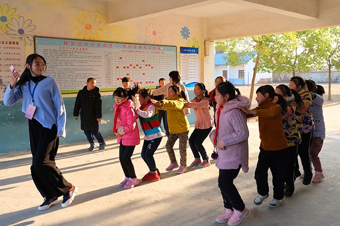浇灌教育之花不是一蹴而就的事情。“每周三下午,无论刮风下雨,我们都会来到这里。”小学教育专业2018(2)班的朱永琪说,在大龙山中心小学的校园里,“七彩课堂”成了孩子们发展兴趣的乐园。她介绍:“我们分设书法、手工、舞蹈、朗诵、绘画、音乐六类兴趣班,每个班级30人左右,其中舞蹈班因为学生数量较多,设置了两个小班。”除此之外,大龙山镇上的永林小学和桃元小学也会有来自安庆师大志愿者们的义务支教辅导。