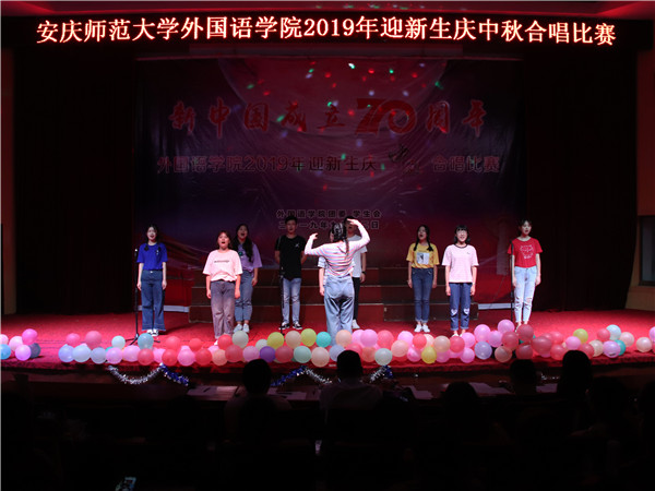 “我的未来不是梦,我认真的过每一分钟,我的未来不是梦,我的心随着希望在动。”9月12日晚,外国语学院在图书馆东报告厅举办2019年“迎新生庆中秋”合唱比赛。校团委书记陈东、外国语学院副院长王先荣、外国语学院党委副书记夏斐等老师观看了比赛,2019级10个班级共300余名新生参加了比赛。师范英语(5)班《映山红》、商务英语(2)班《我的中国心》获得一等奖。