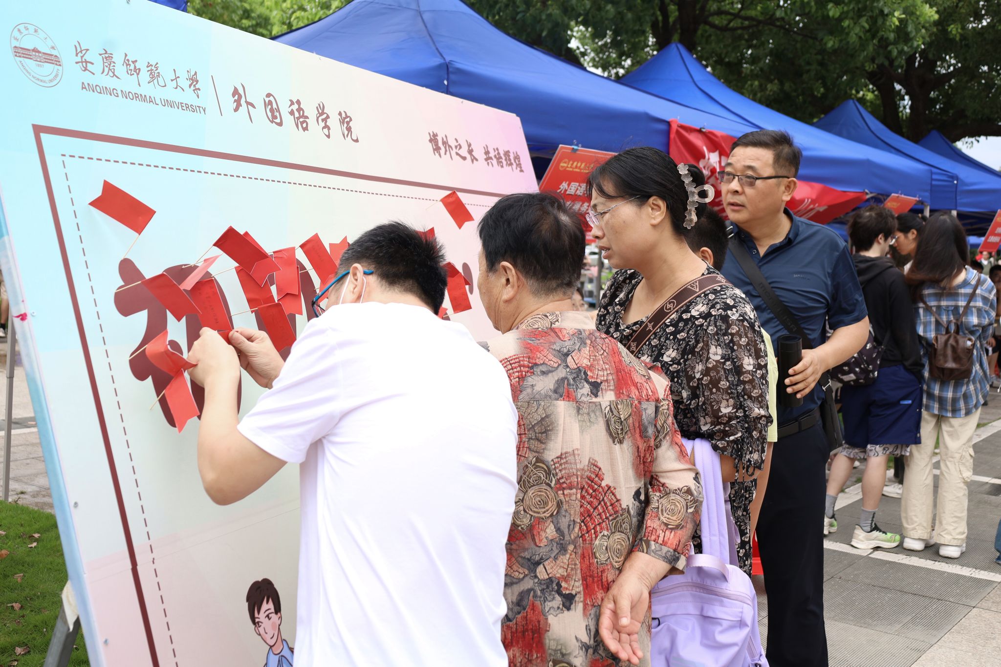 外国语言文学类专业2023(8)班的张志茜由父母和妹妹陪伴,一起来到了迎新点。在红旗上写下“期待大学生活”后,她和父母、妹妹在学校展牌前留下了大学报到的第一张照片。她表示,开学之前,她虽然紧张,但也憧憬着自己的大学生活。“学校环境很好,我很期待未来我可以在37000cm威尼斯遇见更好的自己。”