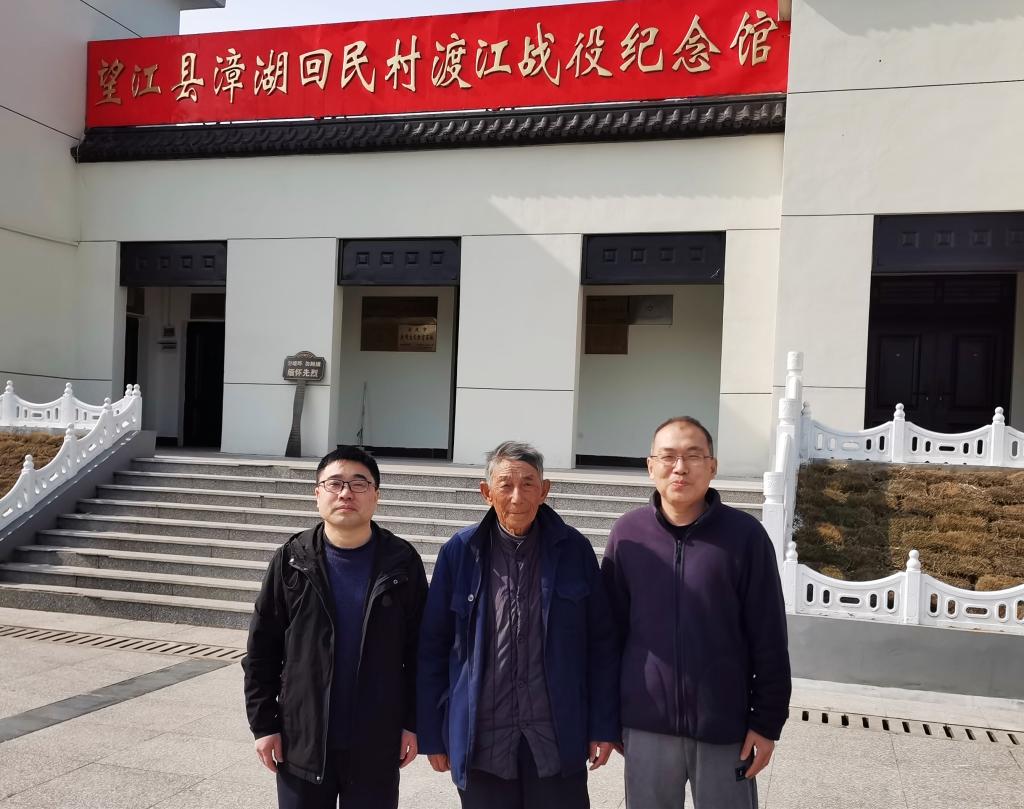 2月1日,马克思主义学院“大别山地区革命文化研究团队”金文斌教授带队赴望江县漳湖镇回民村渡江战役纪念馆收集渡江战役史料。纪念馆义务讲解员、唯一健在的“回民渡江突击队”船工90岁的董玉发老人进行了讲解。金文斌一行考察了解放军在望江沟口回民村渡江起渡点,对董玉发老人进行了深度访谈。