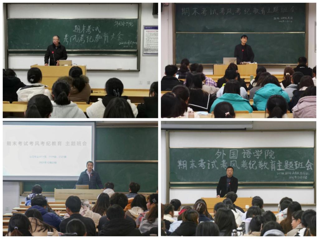 外国语学院历来重视考风建设,以考风促学风。本次学院领导班子深入班级以身说法,提高了同学们的学习积极性和备考复习热情,让同学们端正了学习态度,为同学们树立起诚信考试的良好观念,为良好的考风、学风建设打下了坚实的基础。(撰稿:唐洁 张婉儿 摄影:王子 刘凯文 审核:李亦亮)