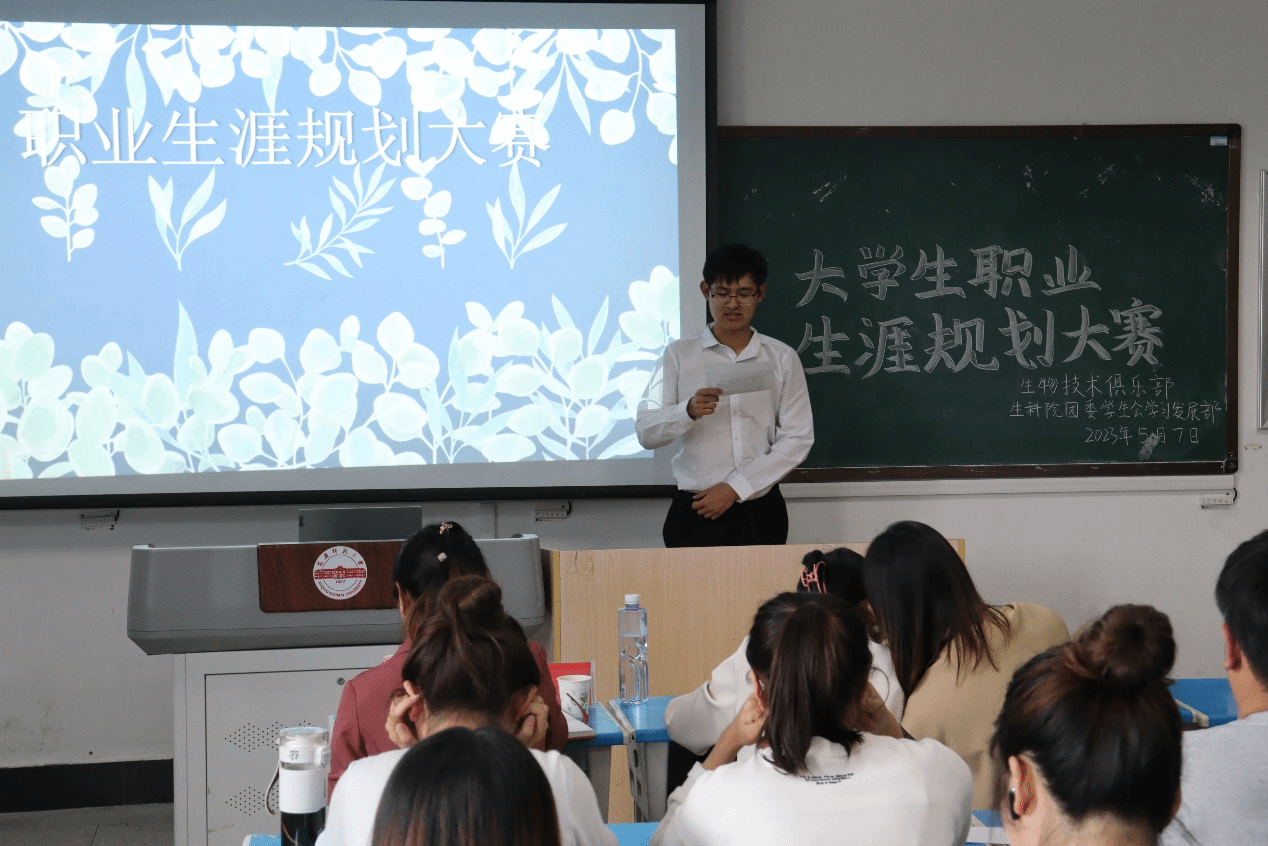 大赛共分为PPT展示和评委点评两个环节,来自2021级、2022级的10余名学生参加决赛。PPT展示环节,每位参赛选手针对自我认知、职业认知、职业决策、计划与路径、评估与调整、职业道德等6个方面,对自己的《职业生涯规划设计书》进行具体形象的陈述。周君以自己创立生物技术俱乐部为引线,条理清晰、循循渐进地对自己的未来进行了完整的规划;孙太平同学把自己的职业生涯规划分为三部曲——自我认知、环境分析、就业前景,描绘着自己的蓝图;李美林以张桂梅引出自己的职业理想,通过制定短期、中期和长期规划为成为一名优秀的人民教师作铺垫。通过紧张激烈的现场展示与答辩,最终李美林凭借整体结构完整、逻辑清晰、详略得当、重点突出的作品脱颖而出,得到在场评委和同学们的一致好评,摘取了本届职业规划大赛桂冠,孙太平和周君分获二三等奖。