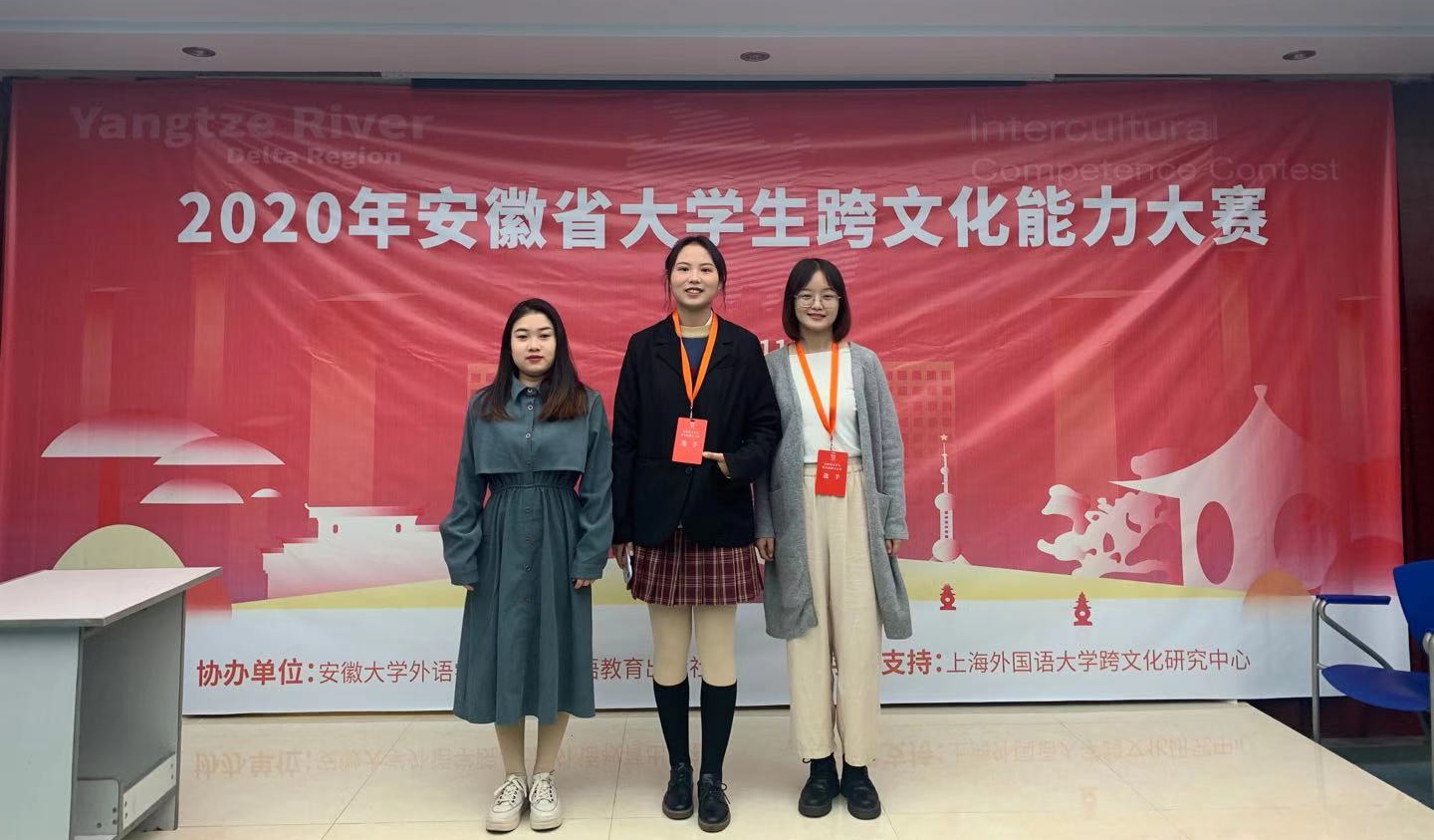 11月21日至22日,2020年安徽省大学生跨文化能力大赛在安徽大学举行。威尼斯官网2018级英语专业李辰玥、化学专业刘雪妮和国际经济与贸易专业檀娅萍三位学生参加比赛并获得二等奖。