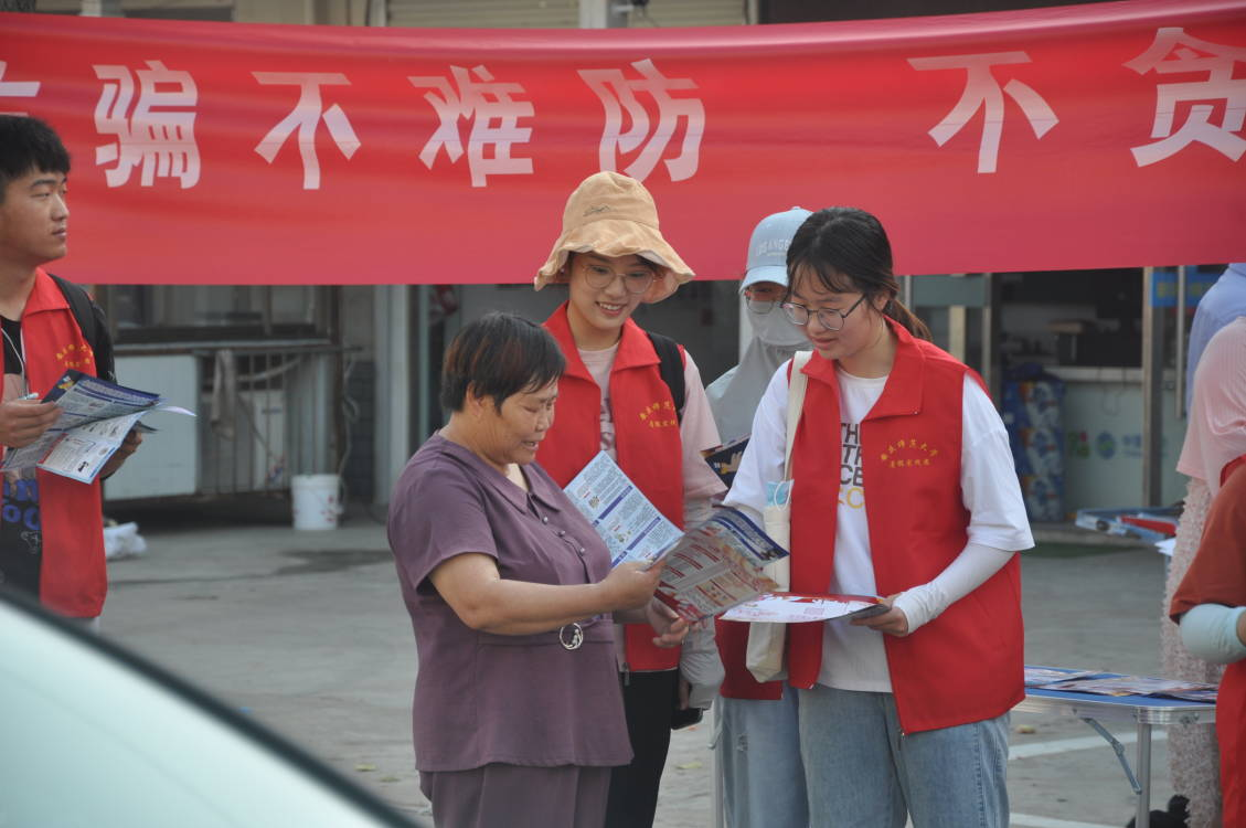 “奶奶,您好,这是关于预防网络诈骗的一些注意事项……”清晨的街道上,一群穿着红色志愿马甲的师大学子正在向过往的爷爷奶奶们宣传预防网络诈骗知识,定远县仓镇人民政府和37000cm威尼斯三下乡返家乡实践团队共同开展了此次预防网络诈骗的宣传活动。在活动宣传时,每一位实践团成员手拿一沓宣传手册,耐心的向过往的老人宣传预防网络诈骗知识。将防诈骗知识与注意事项印刷在宣传手册里,方便老人们携带与阅读,再由志愿者们进行宣传讲解,让更多老人了解网络诈骗,远离网络诈骗。