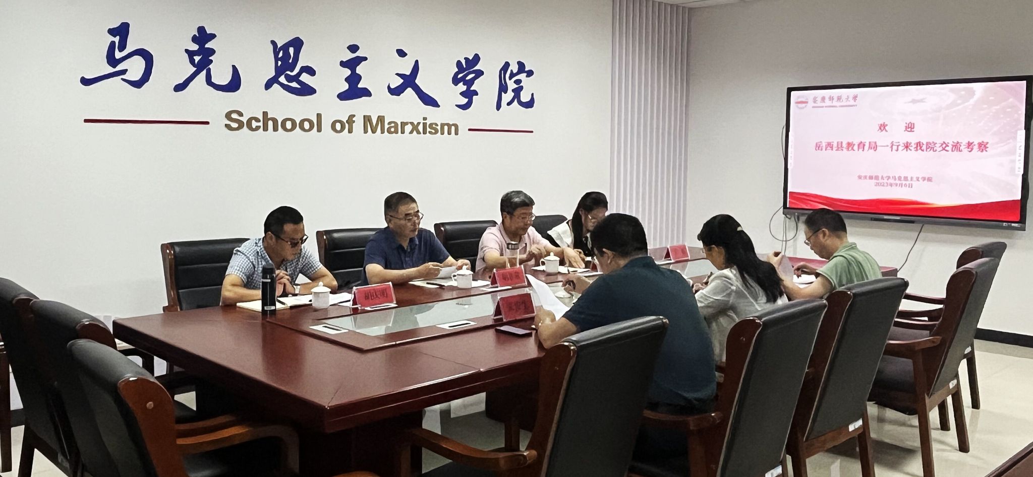 9月6日,岳西县教育局党委副书记、副局长胡非常一行4人来马克思主义学院交流考察,商讨岳西县思政课教师队伍建设相关事宜,马克思主义学院院长严仍昱、副院长张俊生及相关工作人员参加此次交流会议。