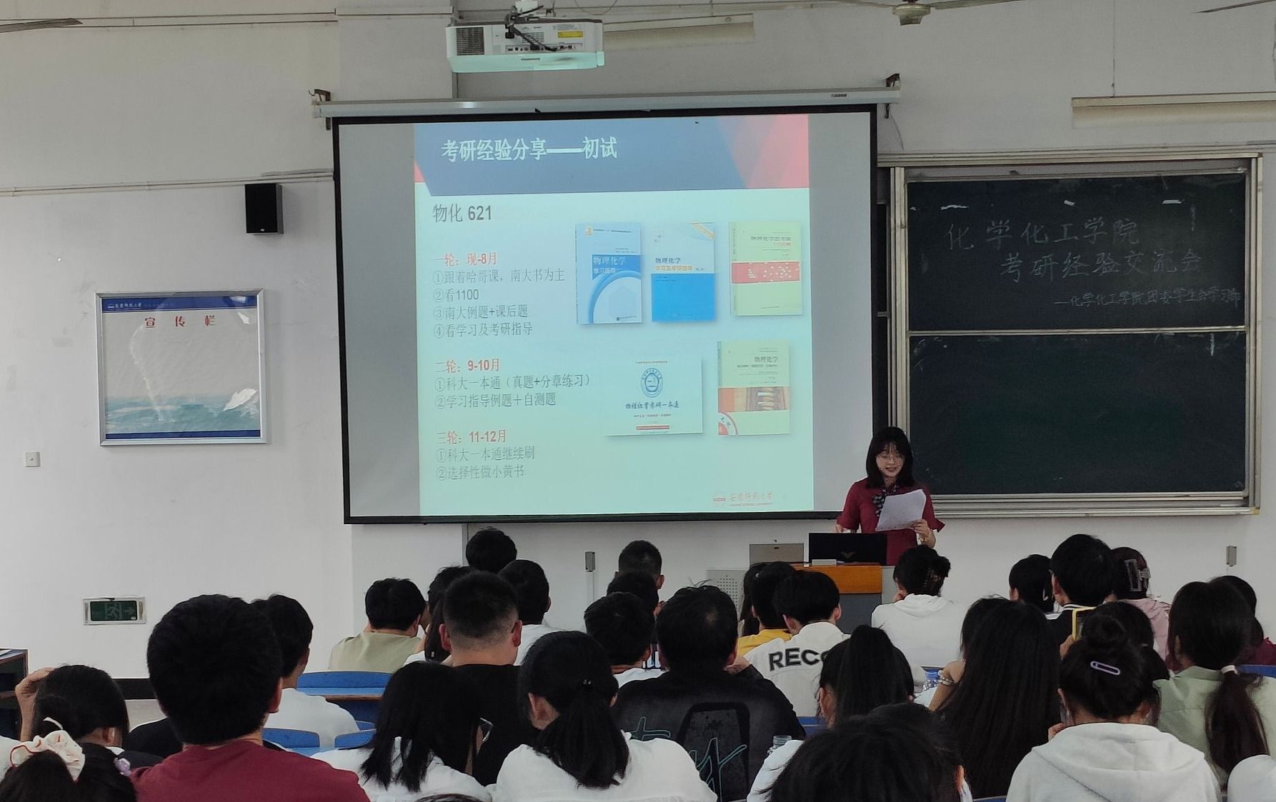 近日,化学化工学院举办考研经验交流会,邀请学院2019级考研成功上岸的7名优秀毕业生进行经验分享,200余名学生现场参与交流。