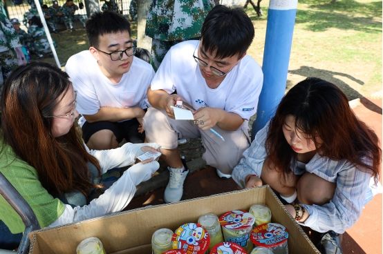 在新生喝柠檬水休息间隙,学长学姐们和他们坐在一起亲切交谈,分享军训发生的趣事和传授军训心得。“我们去年军训,有学长学姐给我们送来了冰棍解暑,今年军训时间长,我们也想让学弟学妹们成为有人挂念的幸福小孩。”谈及送水解暑的原因,史佳琪说。(撰稿:学生记者 刘子阳 李婷 摄影:学生记者 尹昌丹 岑富叶 编辑:江伟 审核:张万茂 赵丽丽)