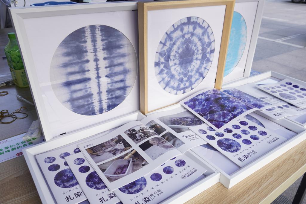 撮皱折叠、打绞成结、印制花纹、浸染上色、晾晒成品,普通的布料“摇身一变”成为蓝白相间、素雅别致的扎染作品,吸引了众多学生的注意。5月7日,校公共艺术教育俱乐部——扎染俱乐部在西苑食堂广场开展“艺韵扎染,爱在师大”的扎染艺术体验活动。